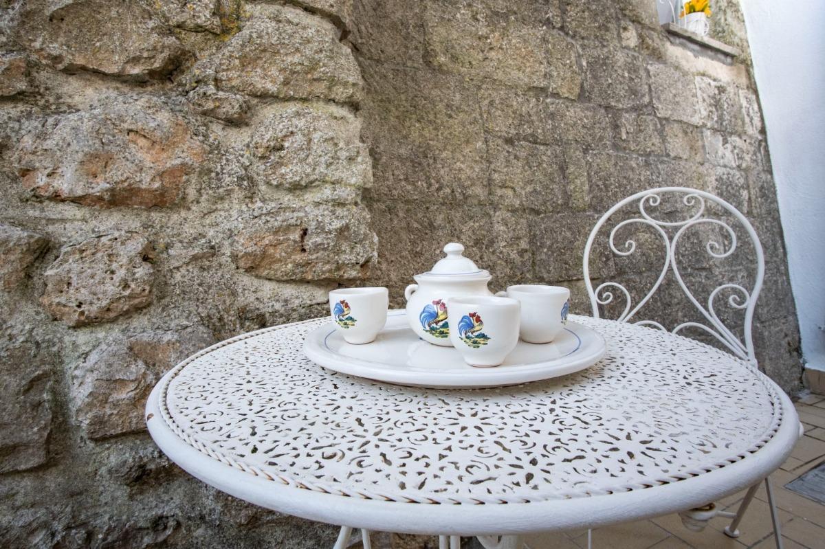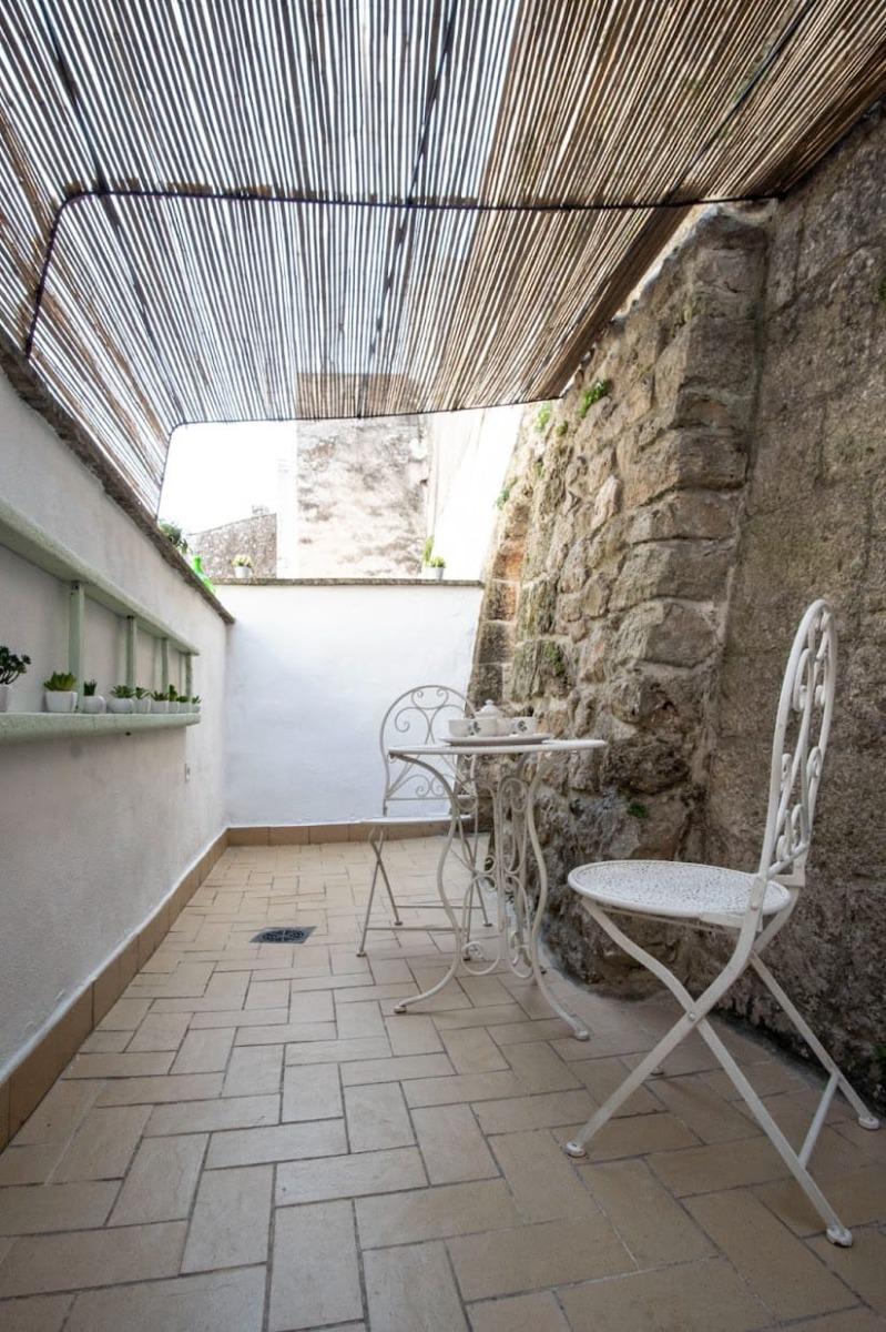 Un valore aggiunto è rappresentato dallo spazio esterno privato, raro in pieno centro storico, pensato come angolo relax con set da giardino e pratico anche per riporre biciclette o attrezzatura da mare. Al momento dell’arrivo gli ospiti troveranno un omaggio di benvenuto con acqua, vino e caffè in cialde.