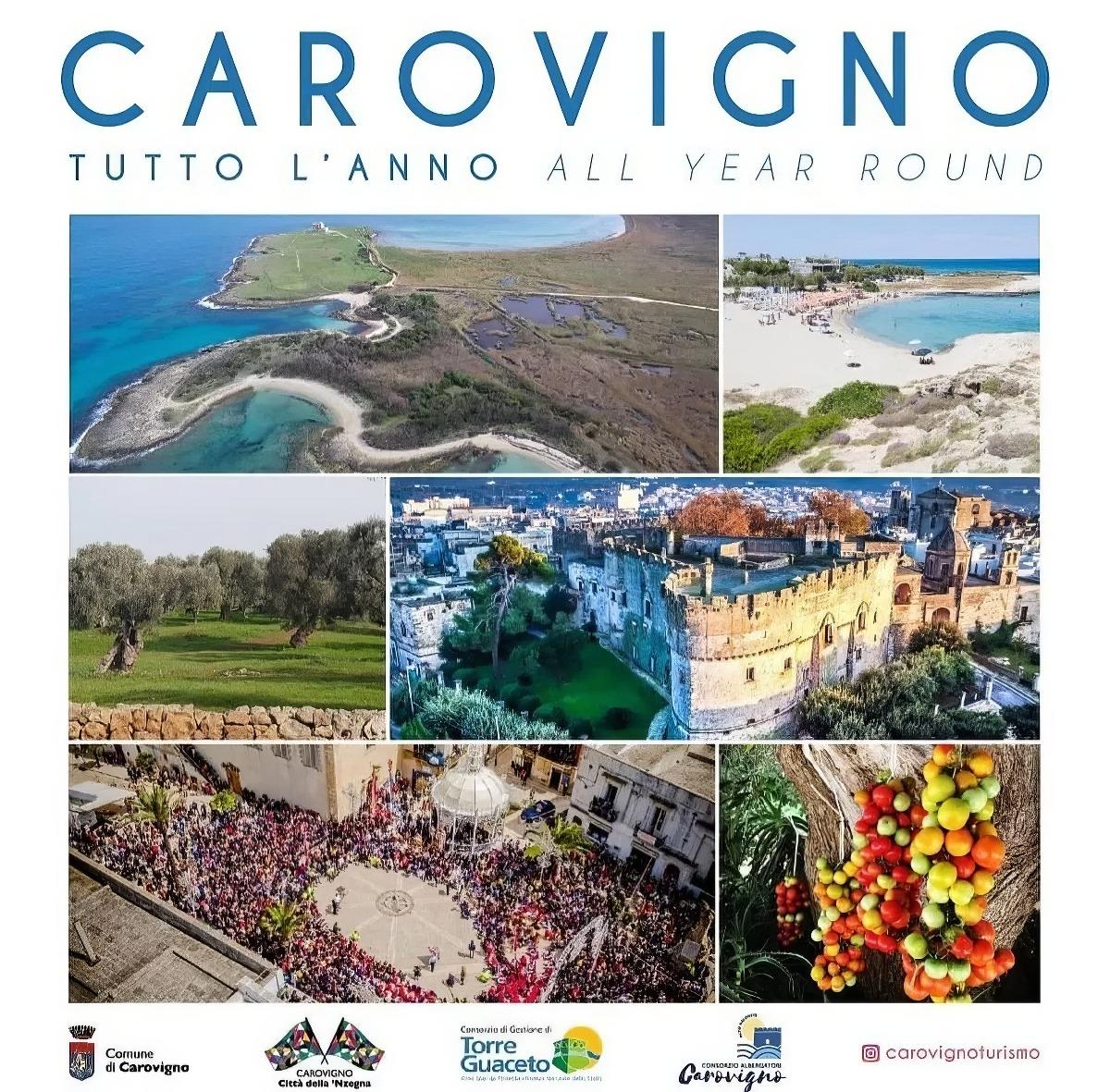 Durante tutto l'anno, il borgo si anima con ristoranti, pub ed eventi culturali. Il territorio di Carovigno offre circa 14 km di costa, con incantevoli spiagge e piccole calette da esplorare. La riserva naturale di Torre Guaceto rappresenta senza dubbio un tesoro per la nostra città.