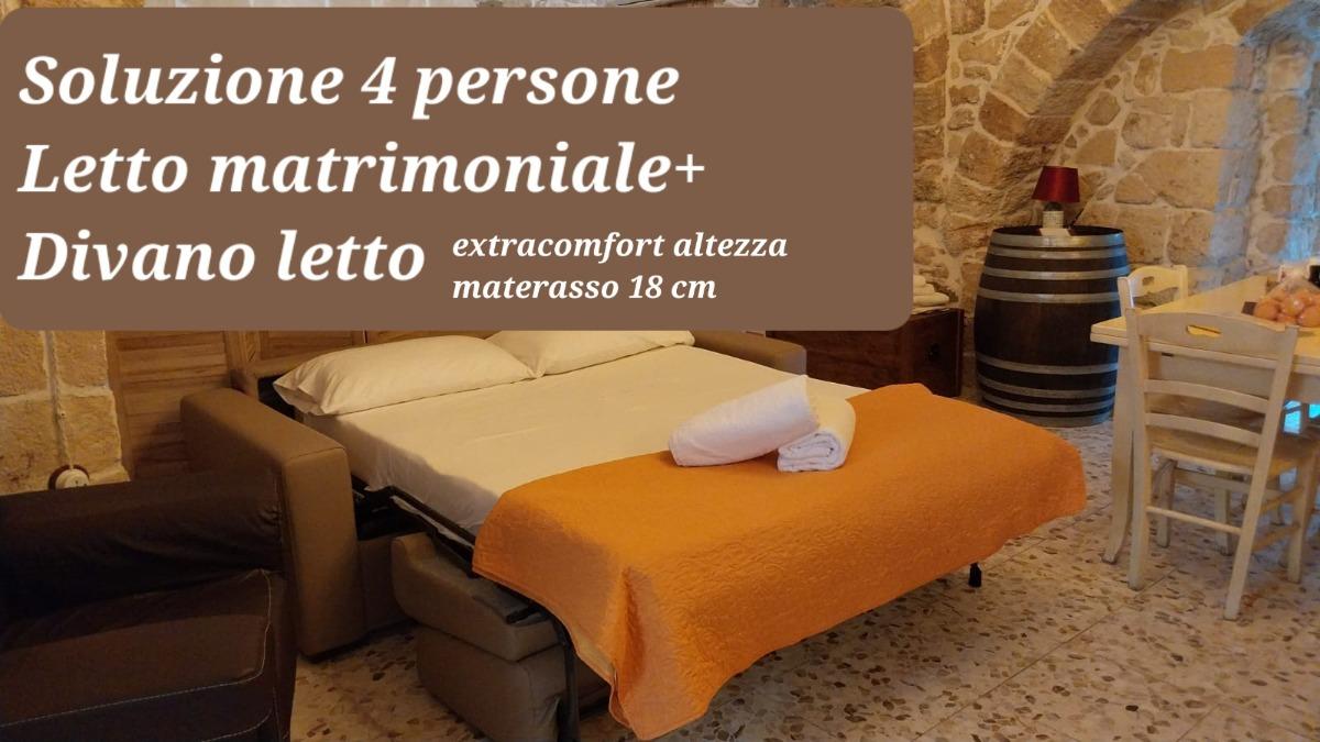 La casa può accogliere fino a quattro persone, con letto matrimoniale, divano letto extracomfort e la possibilità di aggiungere un letto singolo o una culla per i più piccoli. Ogni dettaglio è stato pensato per garantire comfort e privacy, senza rinunciare al fascino delle mura in pietra e alla suggestione di un’abitazione che custodisce secoli di tradizione.